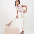 - Wearing recommendations:ou can pair our high-waisted flared pants with dressy blouses, button-down shirts, crop tops, etc., and complete your look with heels or sandals.