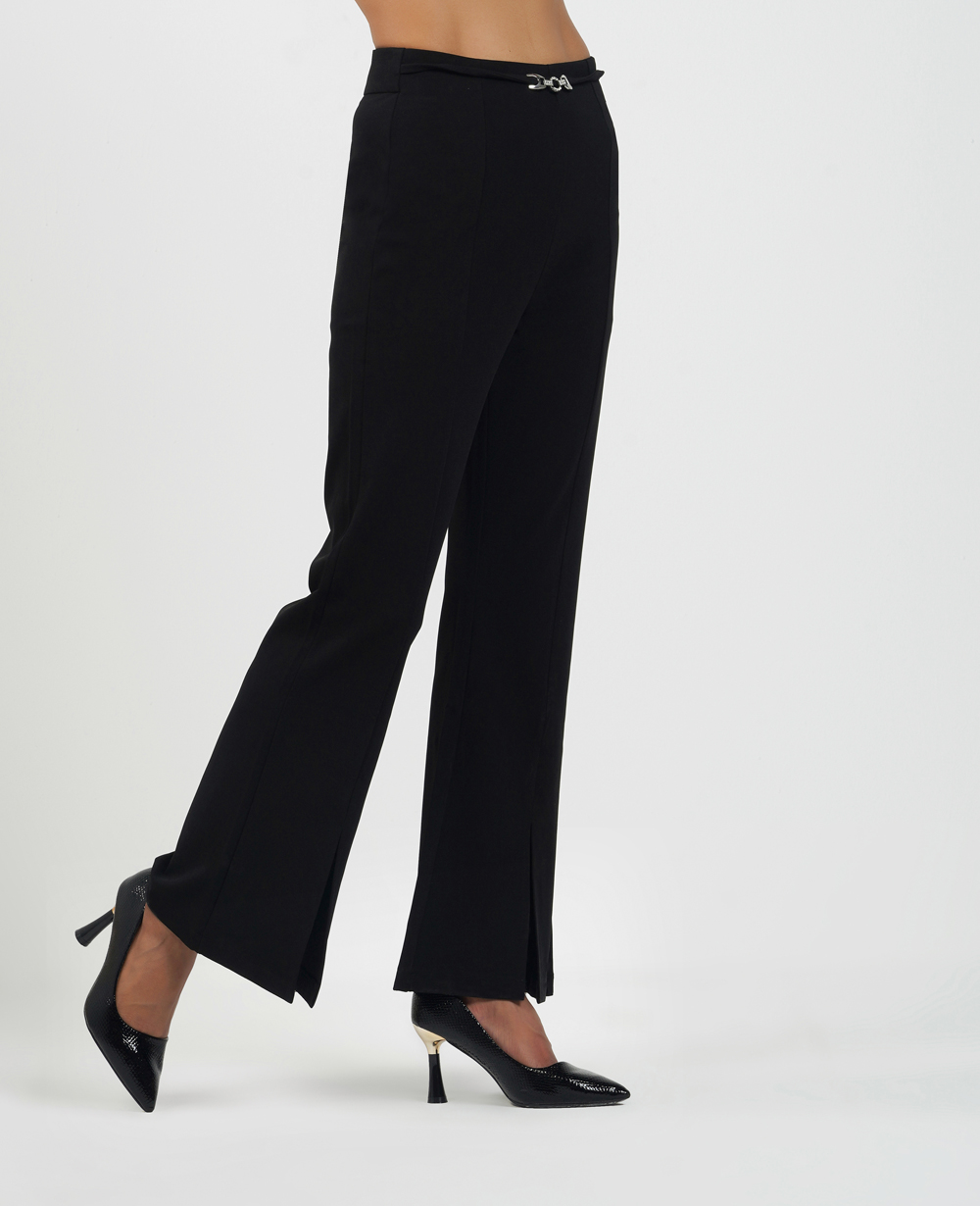- Elegant Design:simple yet beautiful design with skinny fit. Flare or bell bottom pant provides comfort and style. 10” cut at side at bottom gives stylish look. This makes them ideal for traveling and any other casual outdoor activities. If you’re looking for women’s stylish designer pants, this one is for you.